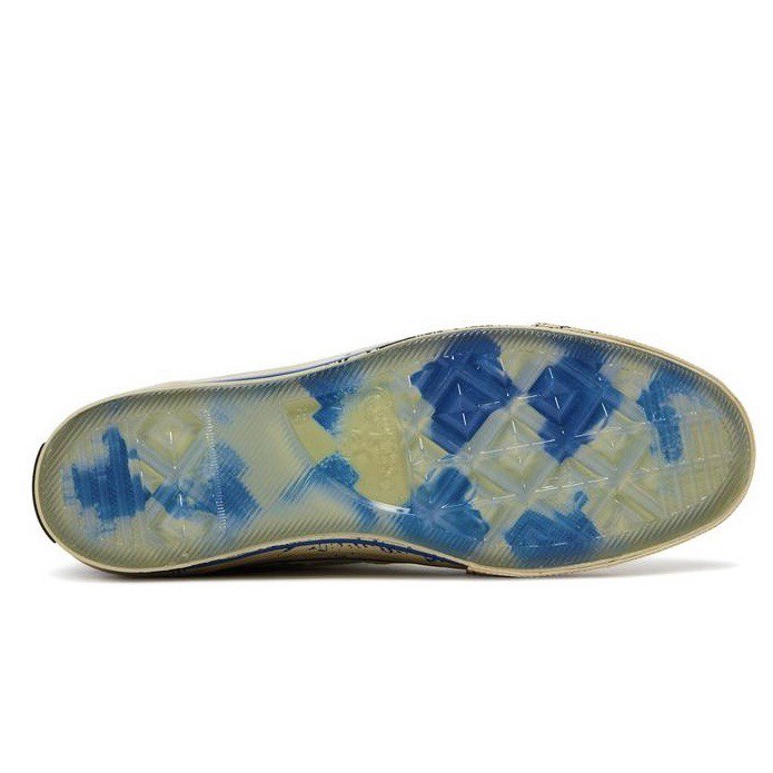 The ADER ERROR X CONVERSE Chuck 70 High-Top Sneakers make a stylish statement with a unique patchwork design and decorative stitching. Crafted with a lightweight canvas material, these sneakers feature a round toe, front lace-up fastening, ankle-length, and a flat rubber sole. Their distressed effect and logo detailing complete the look.