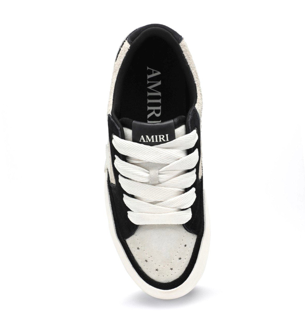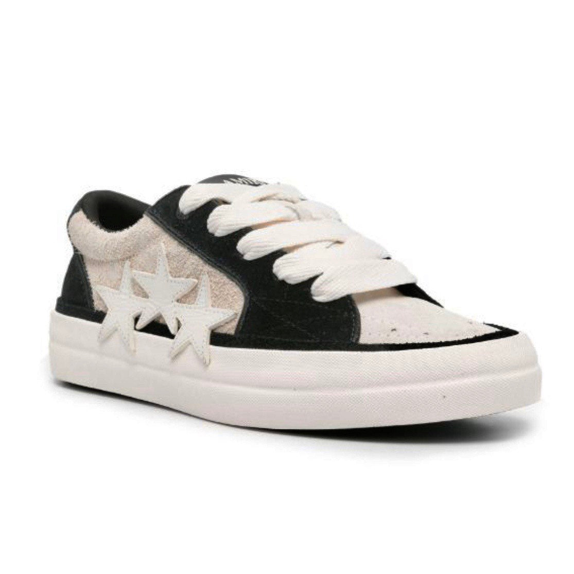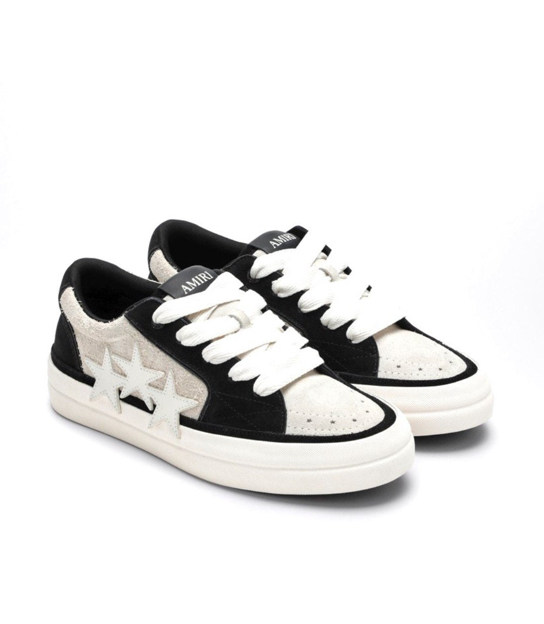 Elevate your sneaker game with the AMIRI Sunset Skate sneakers. Crafted with luxurious calf suede, these black/off-white sneakers feature a colour-block panelled design and star-shape perforated detailing for a unique touch. The padded ankle and branded insole provide comfort, while the vulcanised-rubber sole and lace-up fastening offer a secure fit. Take your look to the next level with these stylish and expertly crafted sneakers.