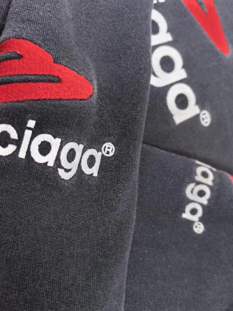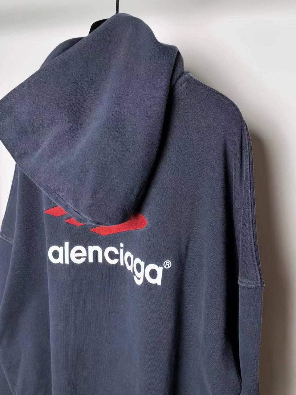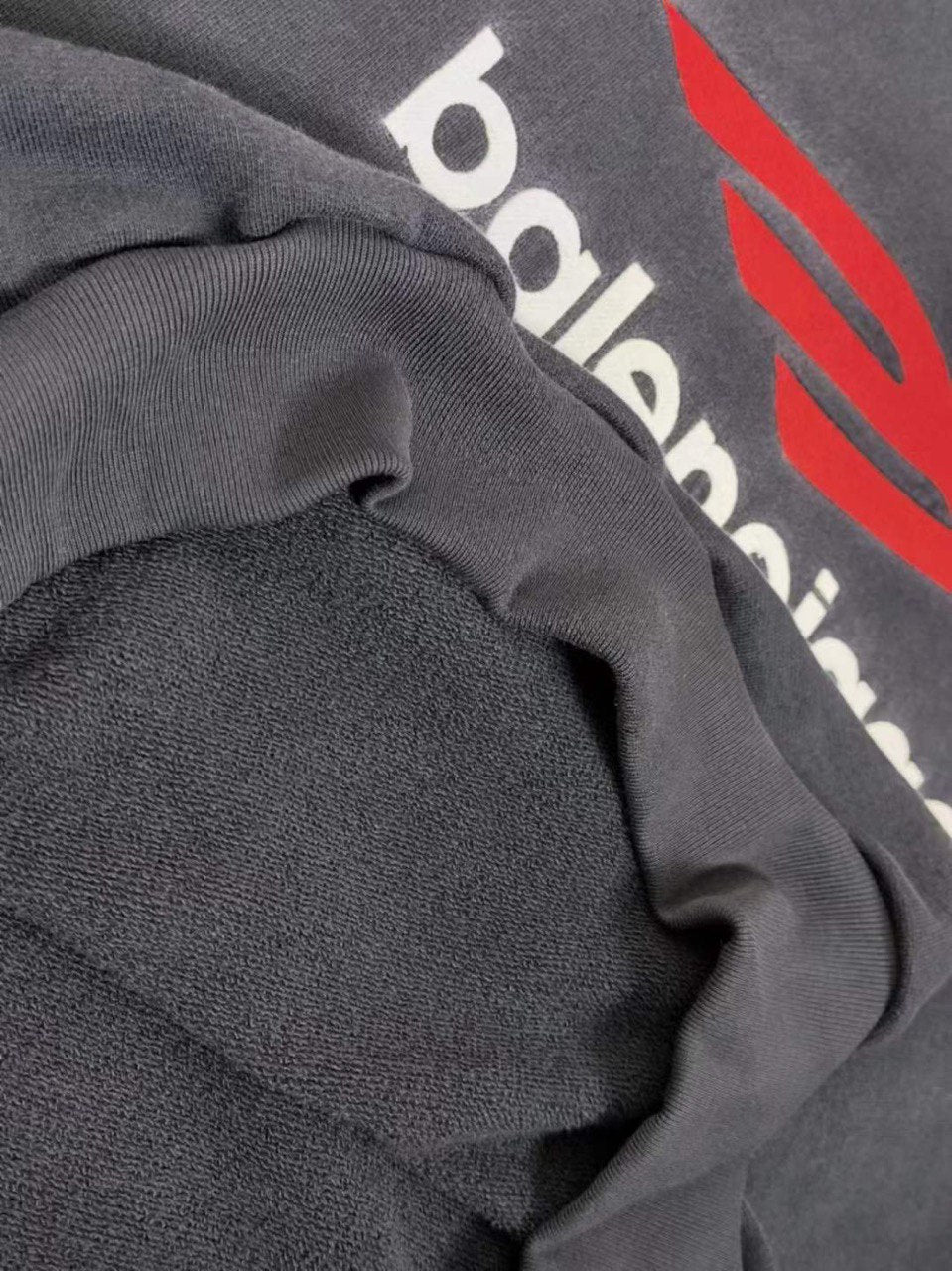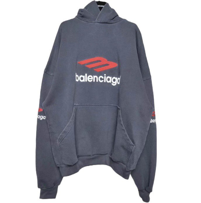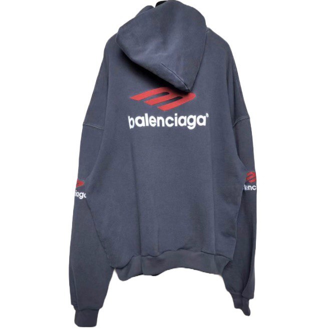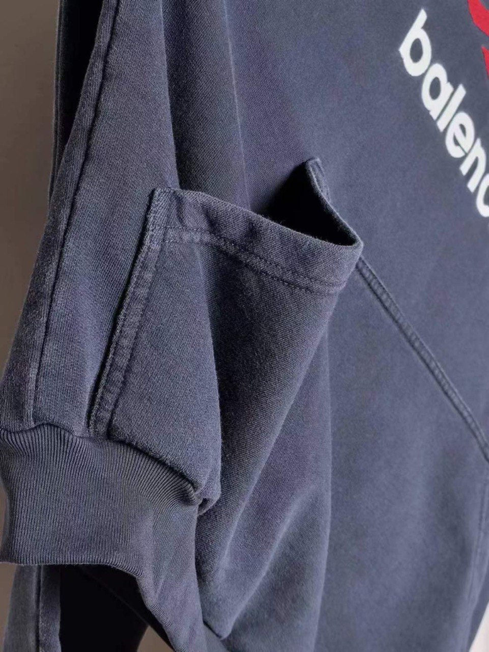 BALENCIAGA Hoodie Oversized in Black medium fleece with washed effect, and 3B sports icon