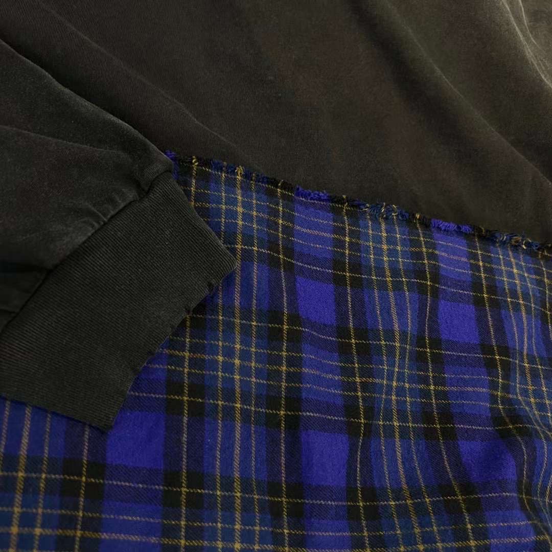 Expertly crafted by Balenciaga, this black cotton long-sleeved T-shirt boasts a hybrid design with check panels and a classic shirt-style front button placket. With superior attention to detail, this B Authentic-patch tee is a must-have for those seeking a unique and high-quality addition to their wardrobe.