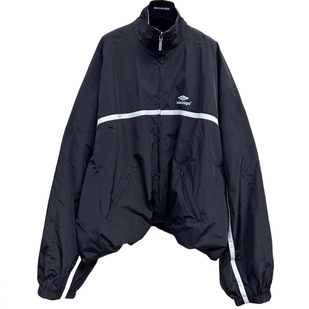 This BALENCIAGA Black Embroidered Track Jacket is made with a cotton- and nylon-blend poplin, making it a durable and lightweight choice for any activity. The track jacket also features intricate embroidery on the front and back, giving it a unique and stylish look. ]