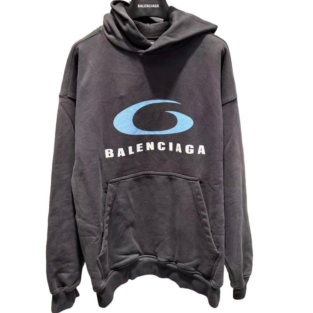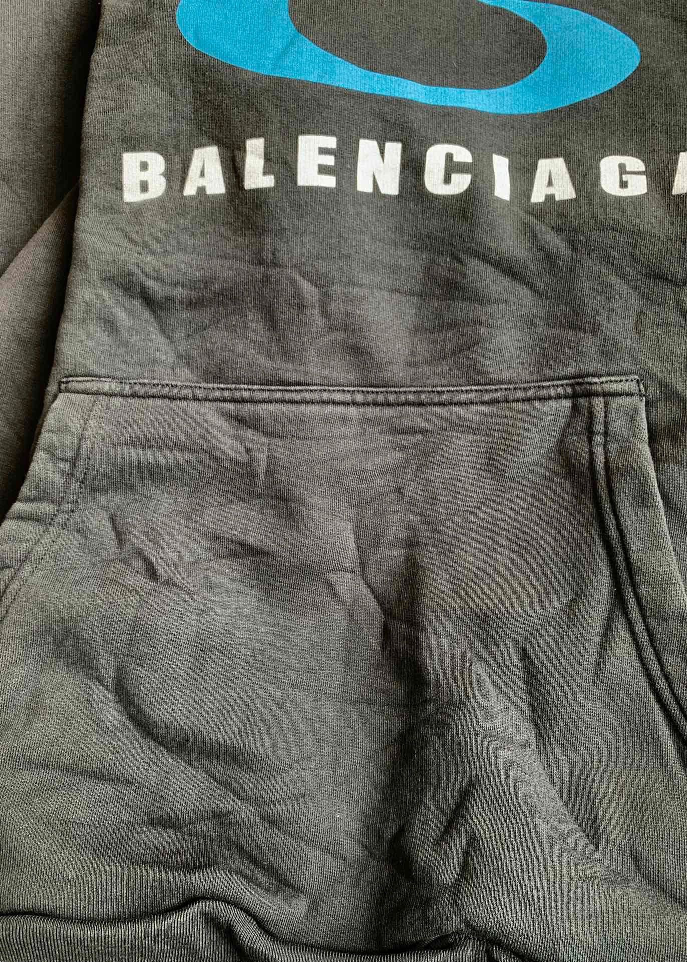 This edgy cropped hoodie from Balenciaga is crafted from French terry with a deliberate fading, distressing, and crinkling effect throughout, adding to its unique character. Featuring a bold logo graphic printed on the front, this hoodie also boasts a kangaroo pocket, frayed edges at the cropped hem, and gathering at the rib-knit cuffs. The dropped shoulders complete the relaxed and rebellious aesthetic