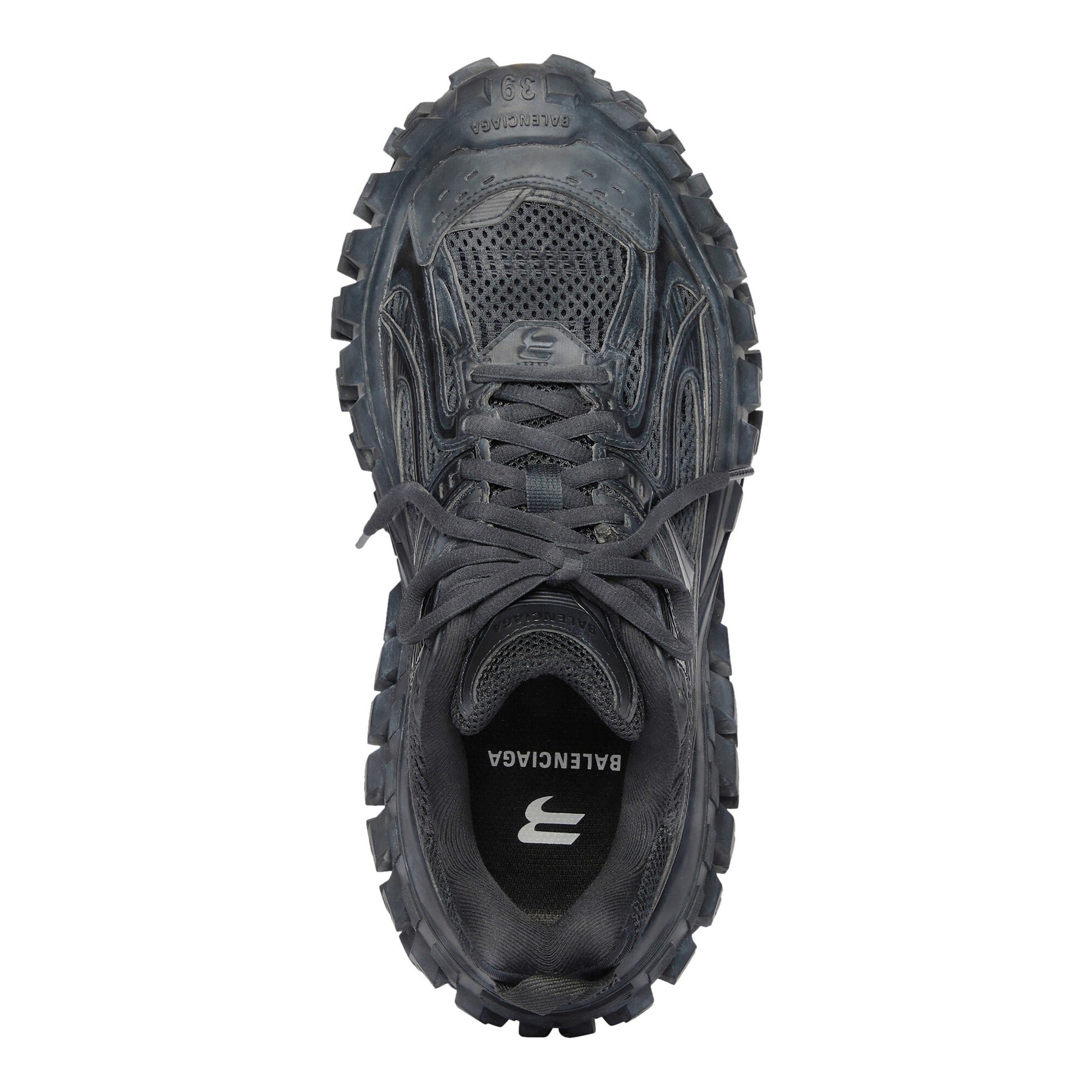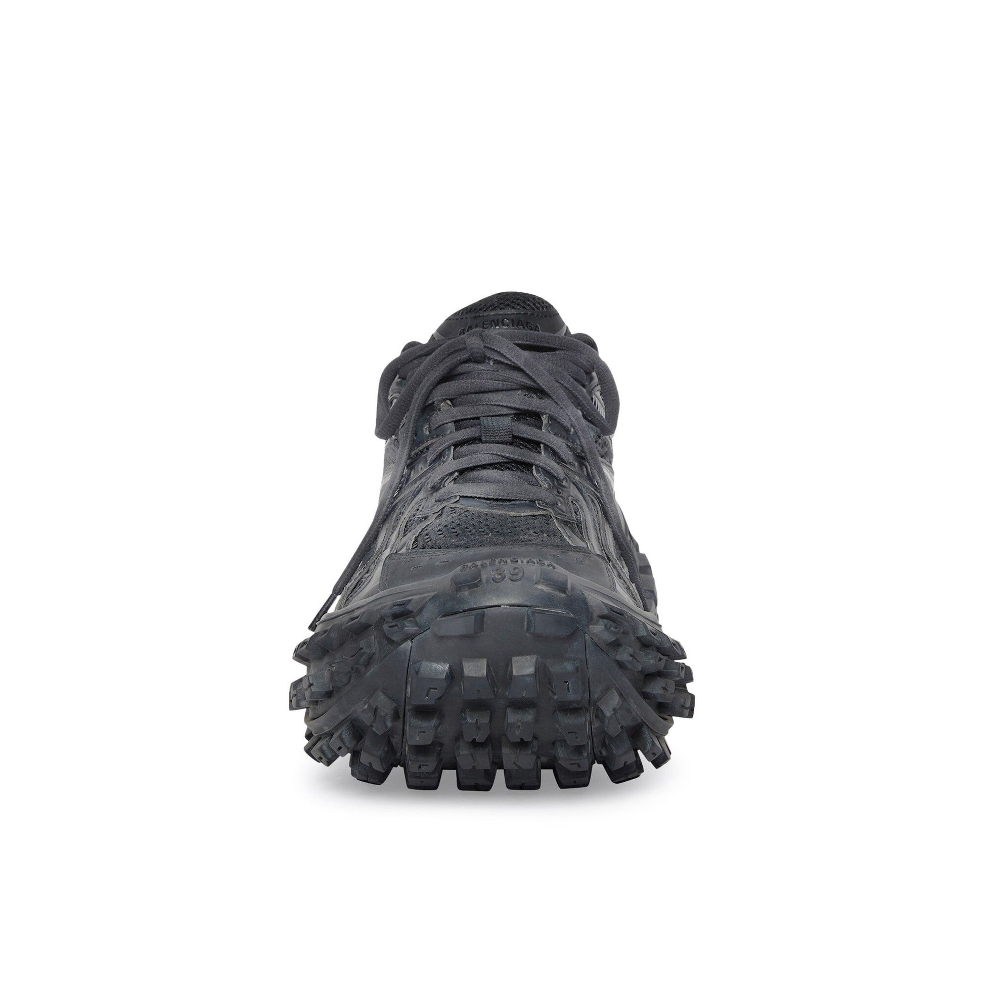 Balenciaga's Defender sneakers made their label debut during the brand's SS22 runway show. Seen here in a tonal black hue, the sneakers sit atop an extended rubber outsole that takes inspiration from tires with its distinctive tread.