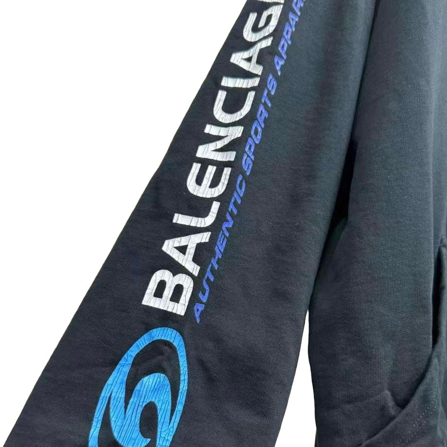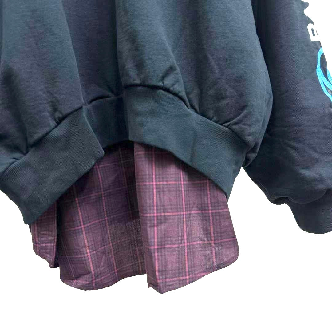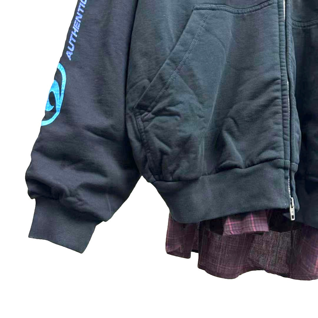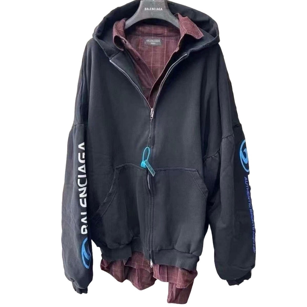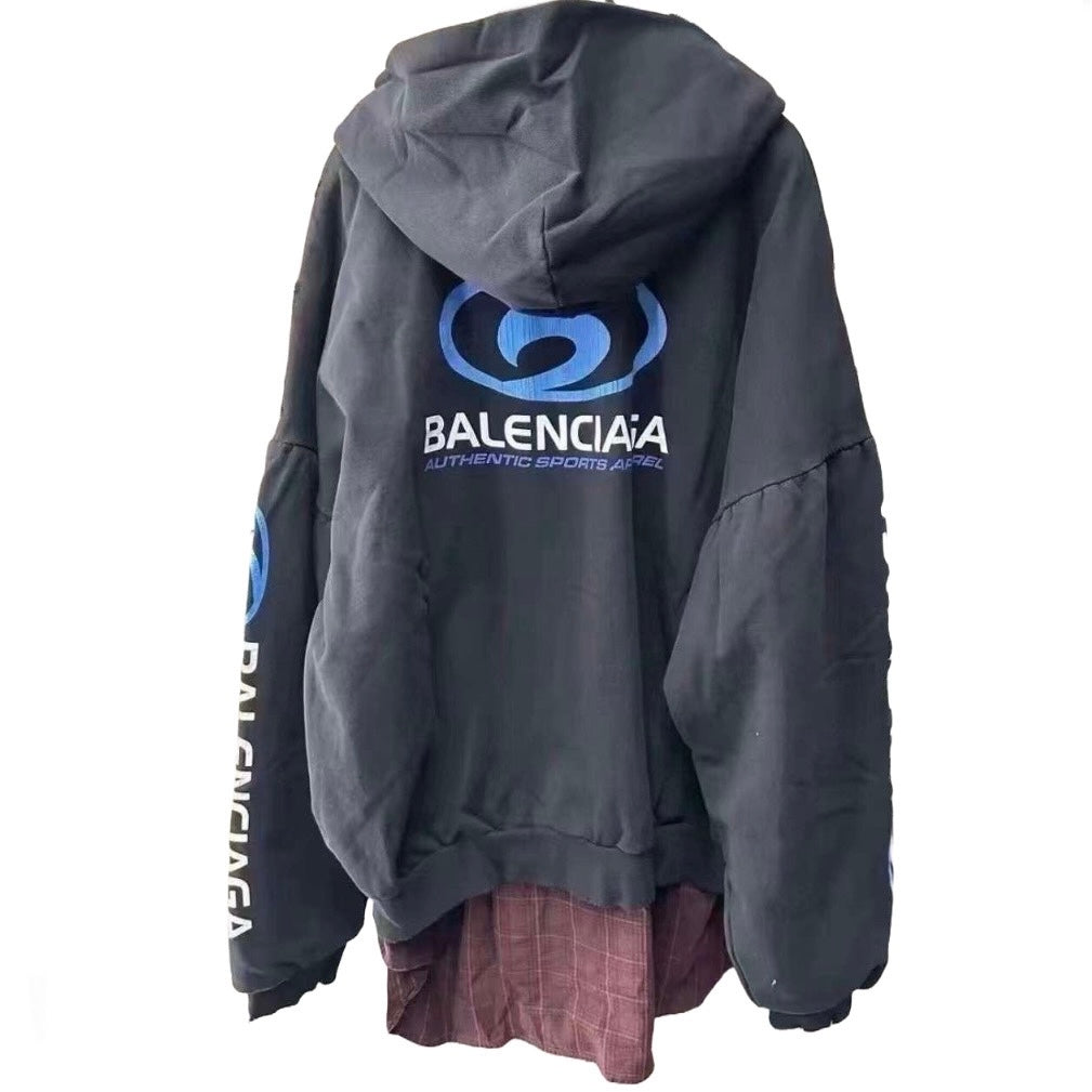 Balenciaga Spring 24 Layered Surfer Hoodie. This unique piece creates the illusion of wearing a flannel and a zip-up hoodie simultaneously, without the bulk of a third layer. We love the logo placement on this. Available now in Sizes 1,2. Don’t miss it !!!