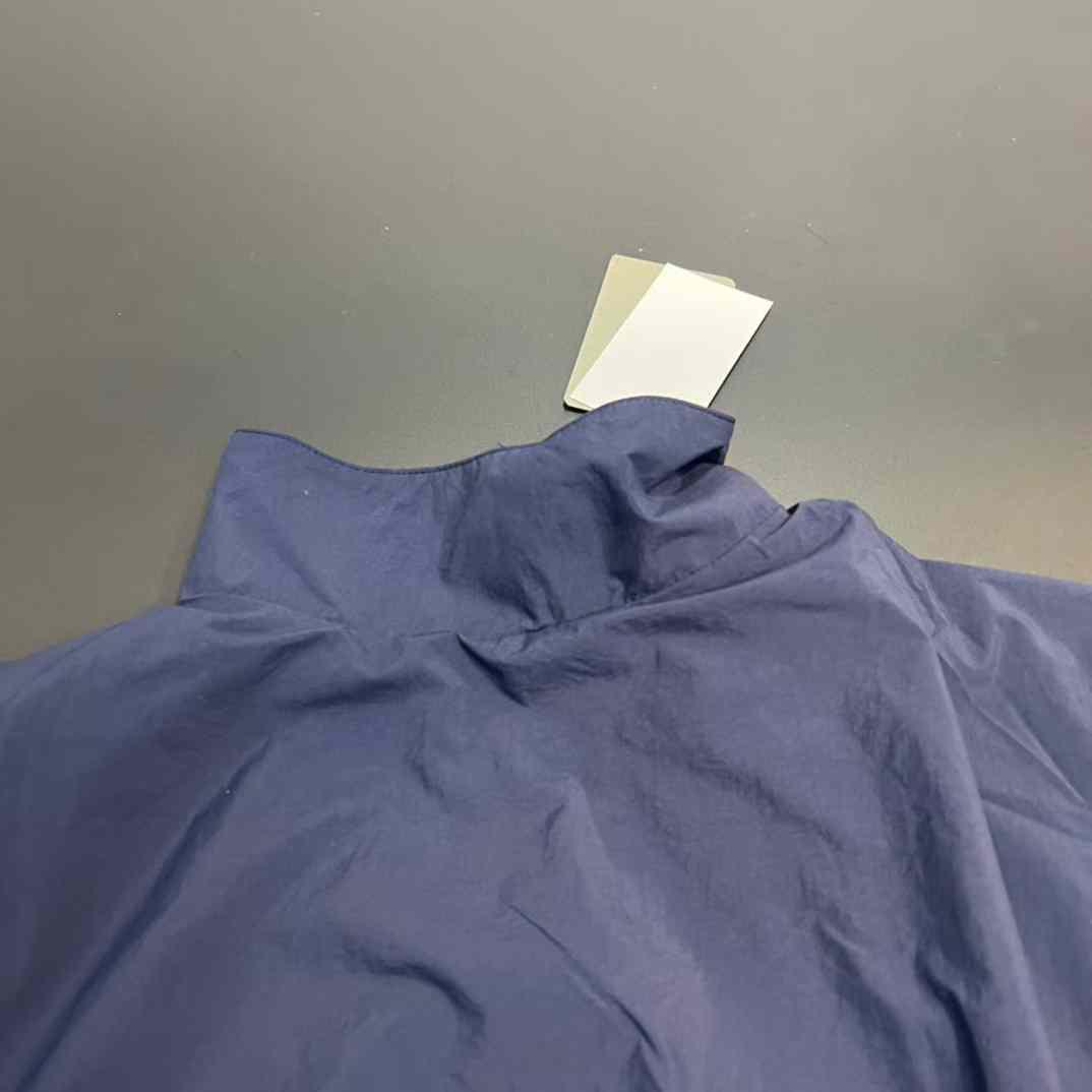 Made from high-quality navy nylon, the jacket combines functionality and elegance.