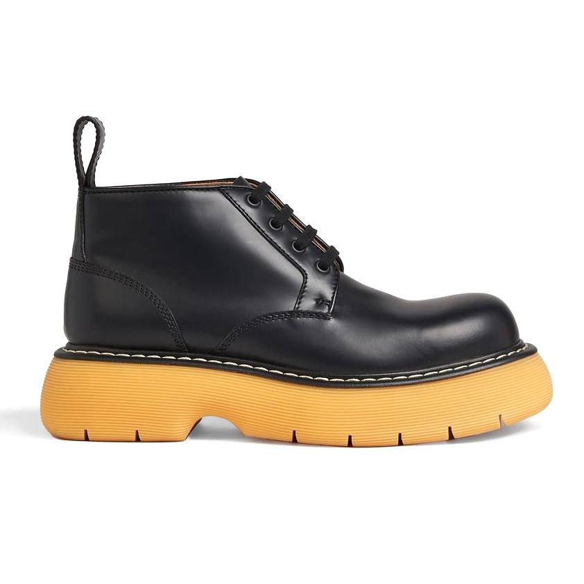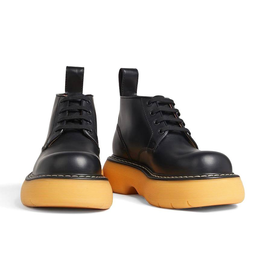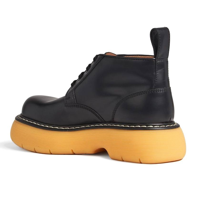Boots from Bottega Veneta brand. Crafted from brushed leather with a bulky, rounded toe, and rubber sole
