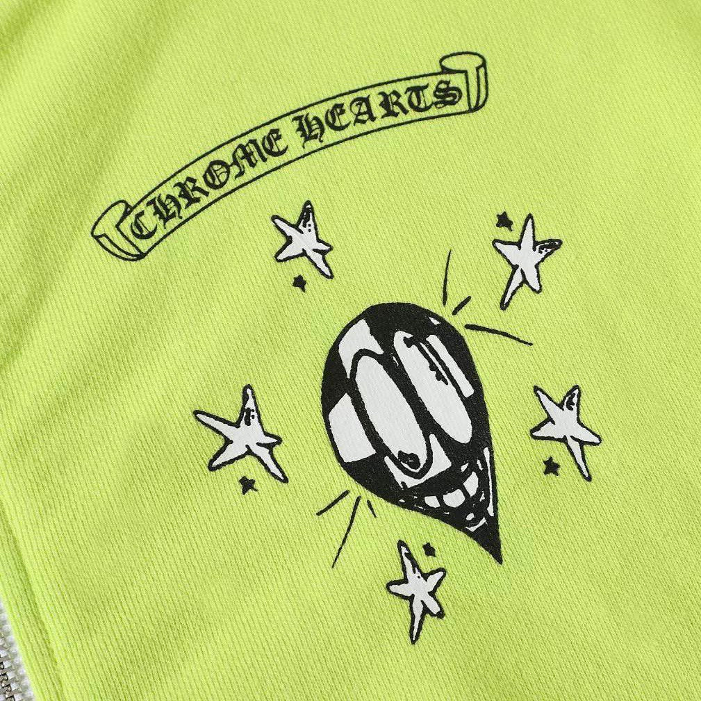 Chrome Hearts Matty Boy Hoodie in lime green color, with zip.