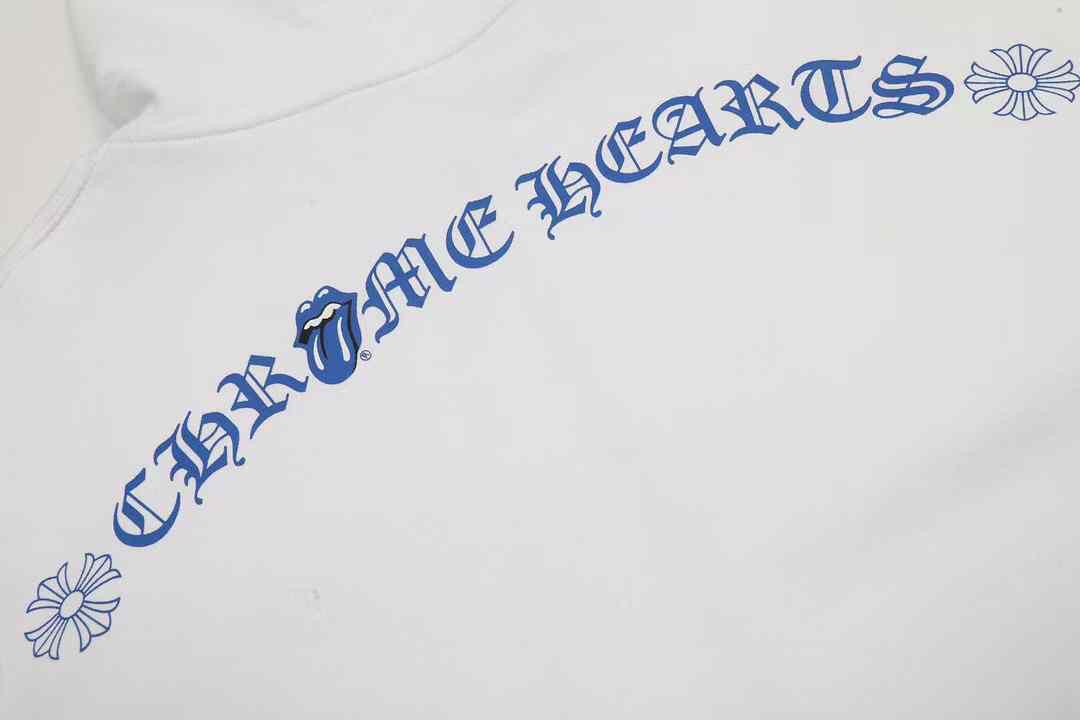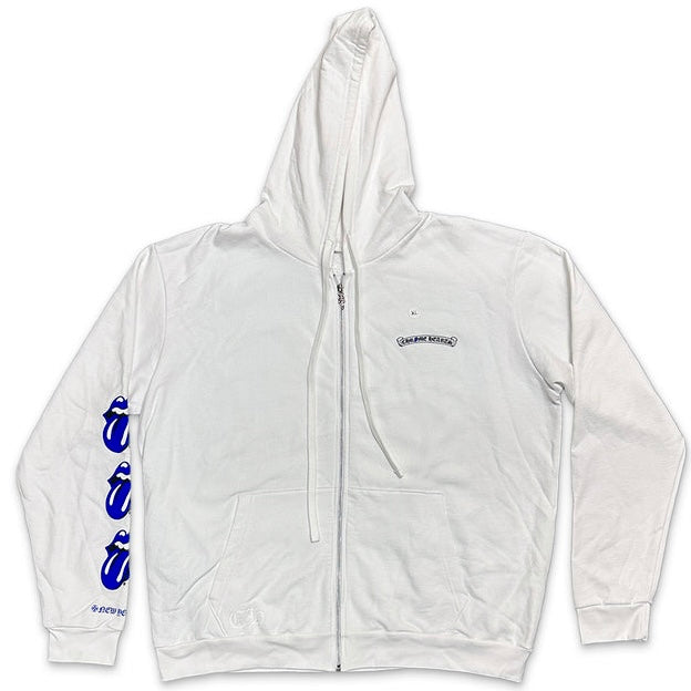White Chrome Hearts Rolling Stones Script Blue Logo Zip Up Hoodie. Special Edition. Last 2 pieces available in sizes S and M