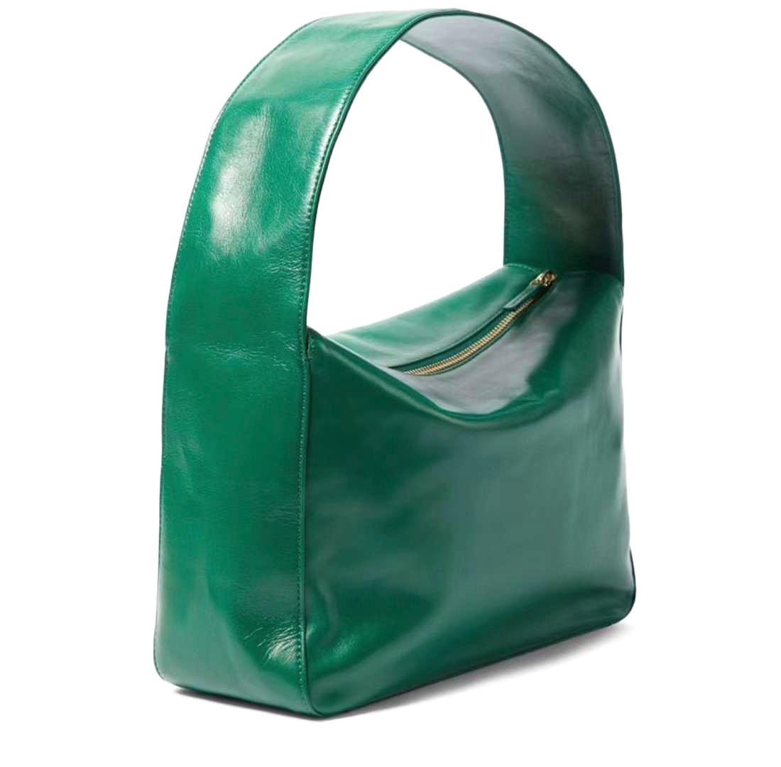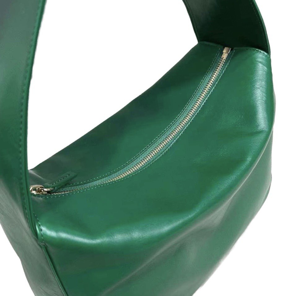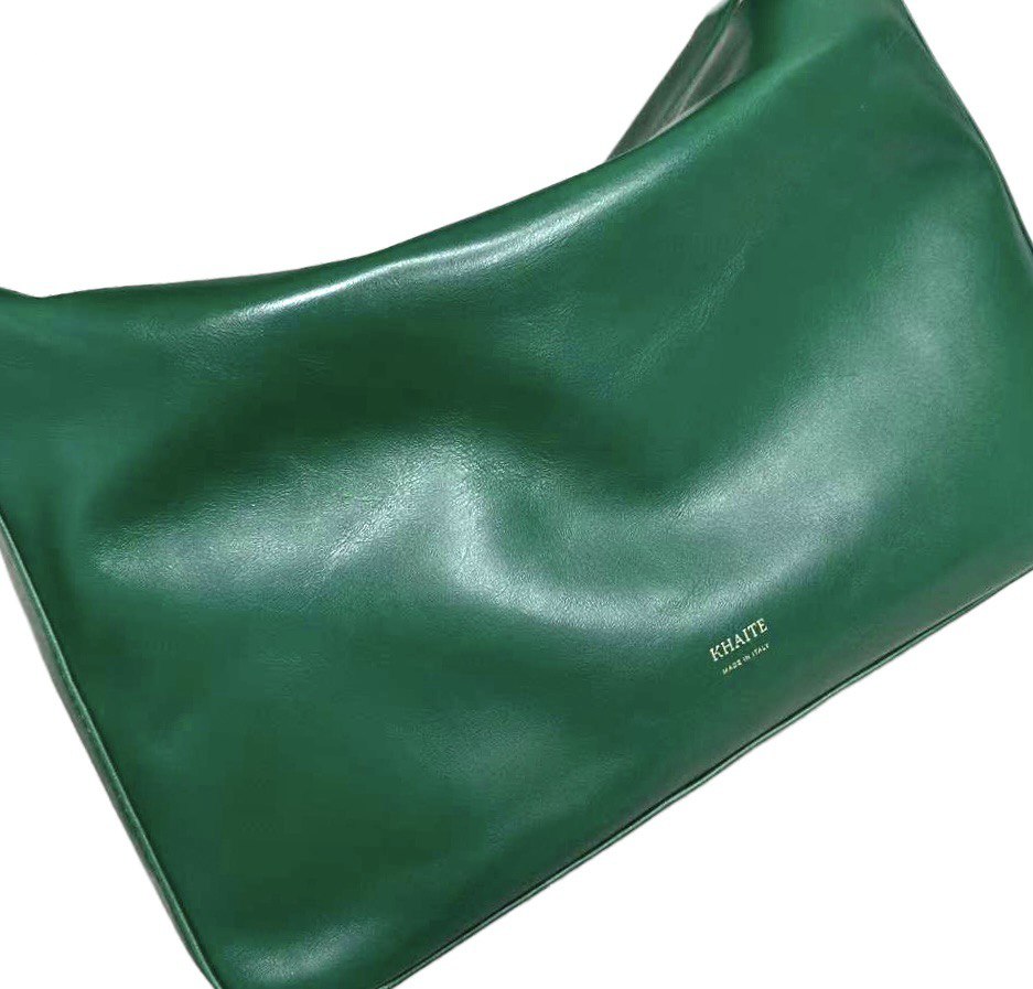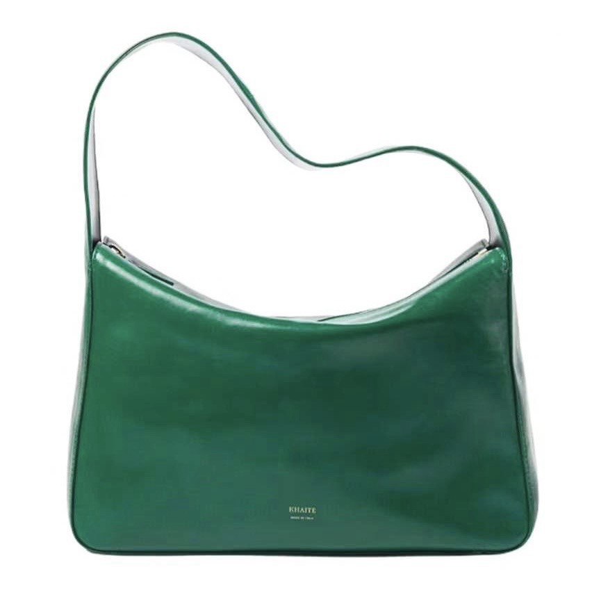 Expertly crafted in Italy from high-quality calf leather, the KHAITE ELENA Green Shoulder Bag is the epitome of luxury and style. With a zipped top for secure closure and a convenient top handle, this bag is perfect for any occasion. Its beautiful designer color, Forest Green, adds a touch of sophistication. Comes with a dust bag for protection.