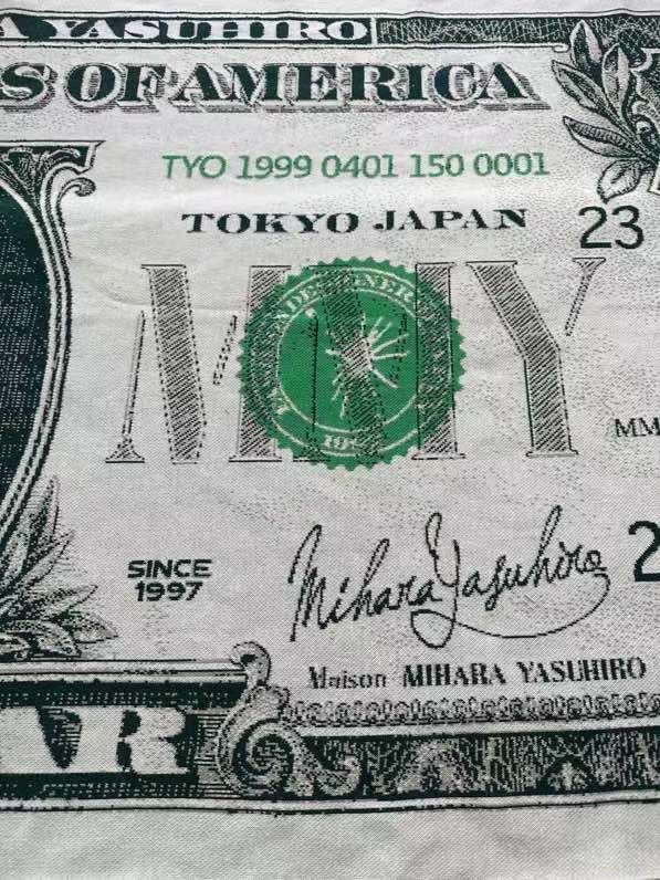 The MAISON MIHARA YASUHIRO Bill Jacquard Knit Stole is a collaboration item between jewelry artist Kota Okuda and MAISON MIHARA YASUHIRO. This large-sized jacquard knit scarf features a distinctive, bill-inspired design, and can be worn as a scarf, shoulder wrap, or blanket. Okuda alchemically expresses the opaque value hidden in today’s capitalist and commodity culture, making this a truly unique piece.