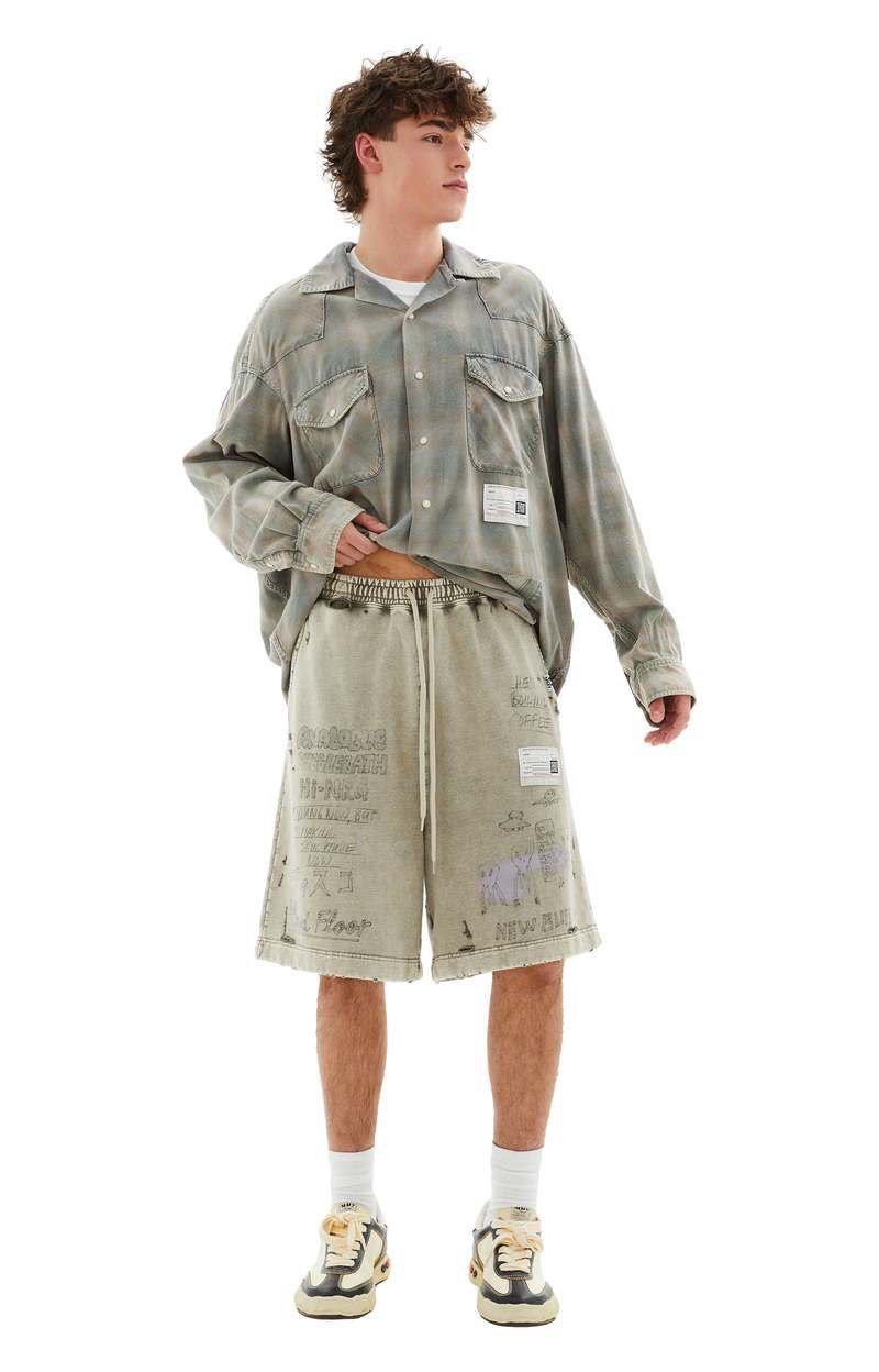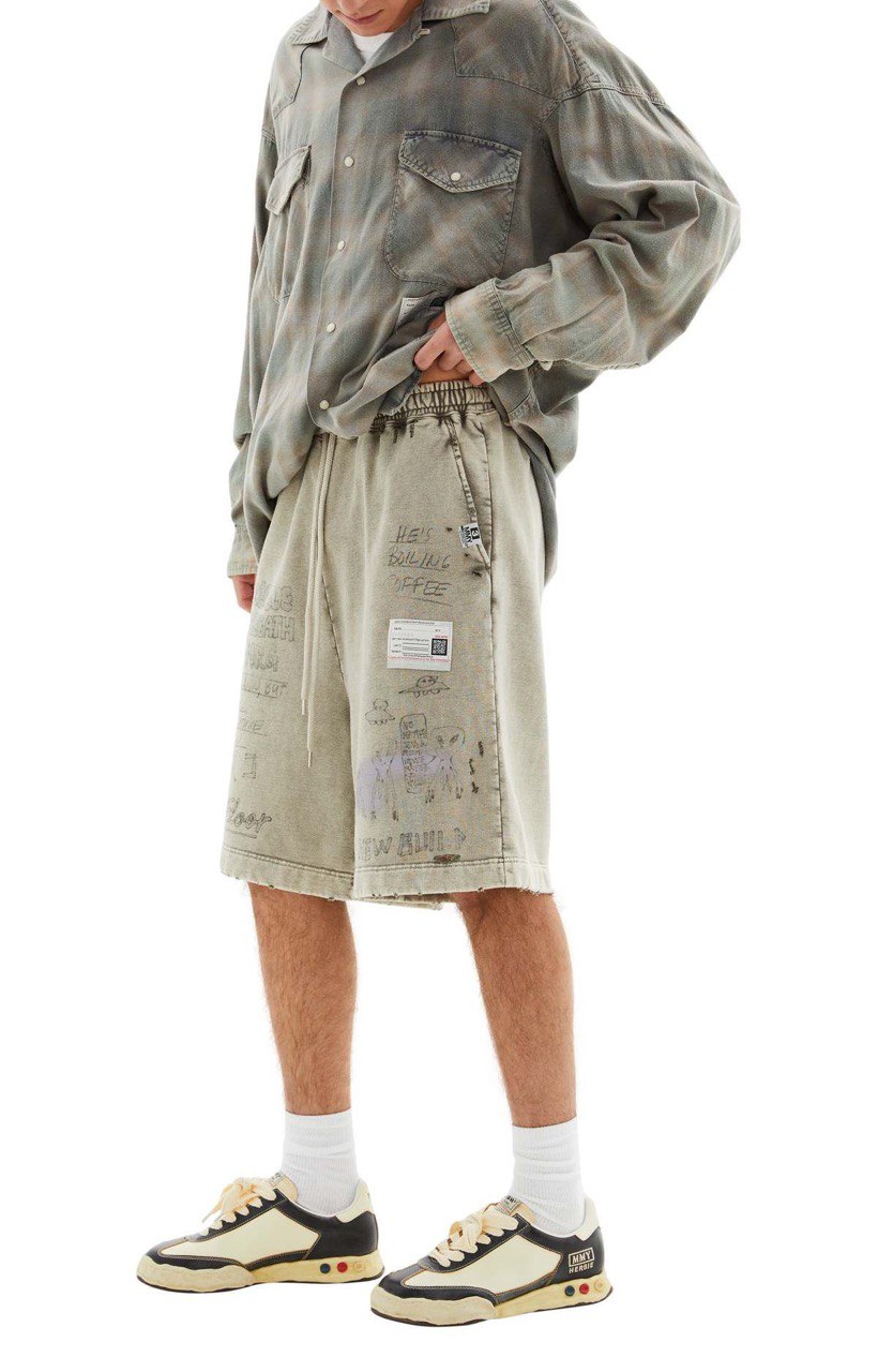 Expertly crafted with a bleached finish and a hand-drawn print, the MAISON MIHARA YASUHIRO Bleached Shorts in 'Beige' offer a unique and stylish addition to any wardrobe. The elastic waistband and spindles provide a comfortable fit for all-day wear.