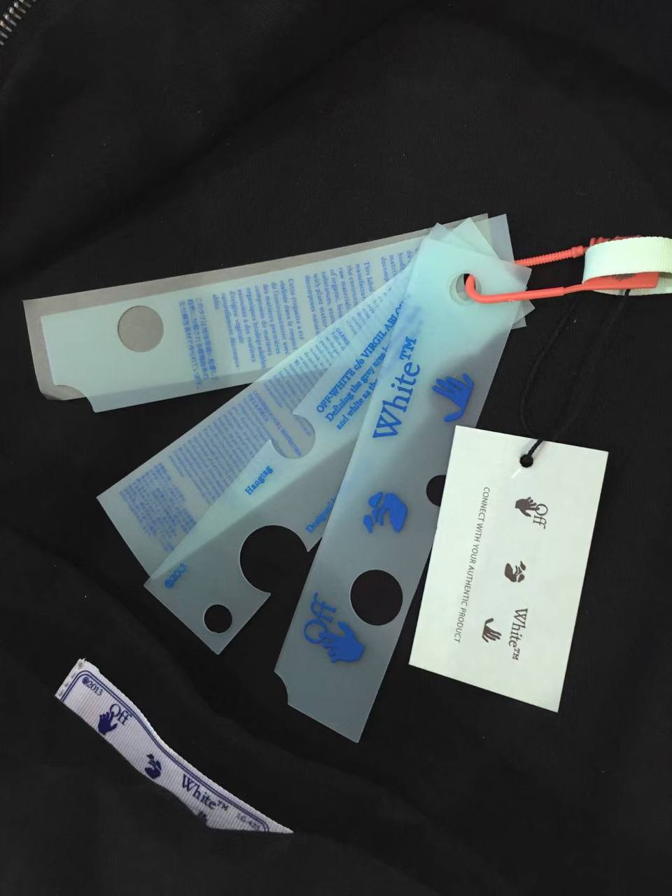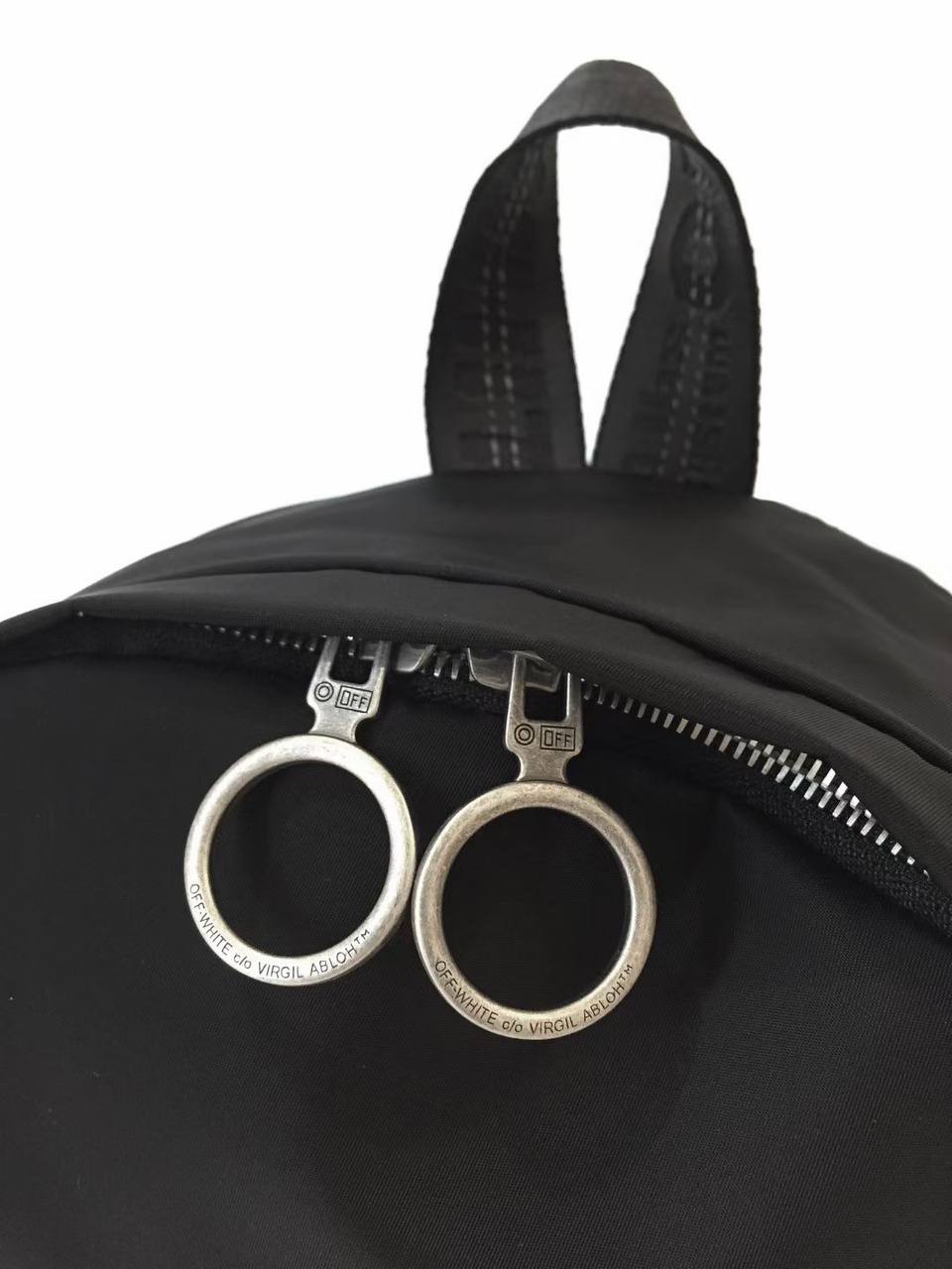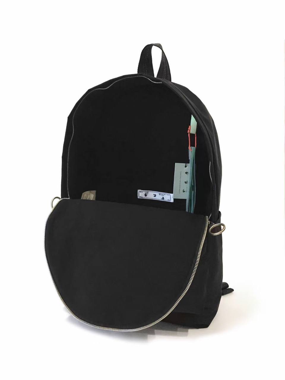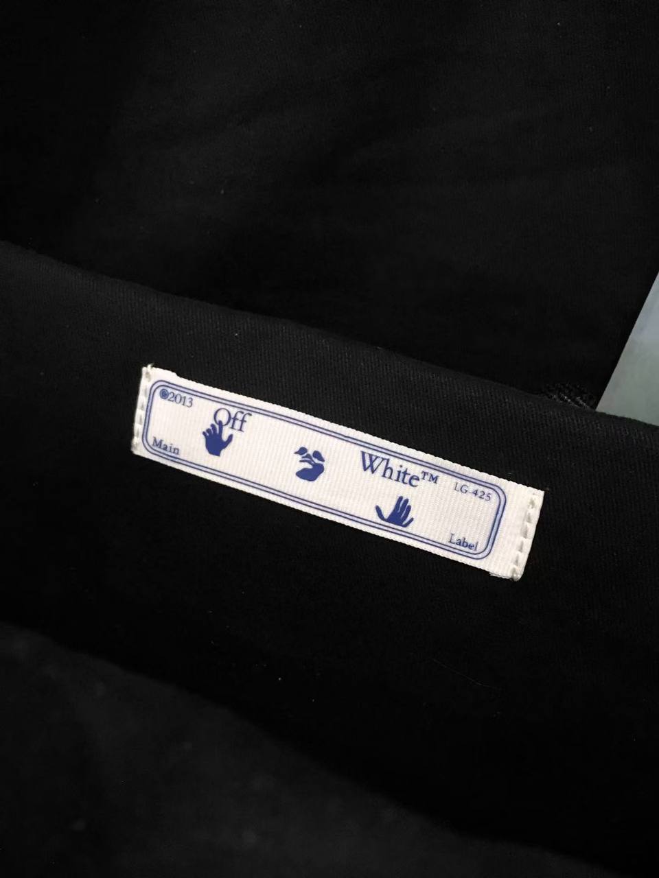 The streetwear all-black iteration label's Hands OFF motifs in a contrasting white hue and Industrial shoulder straps.
