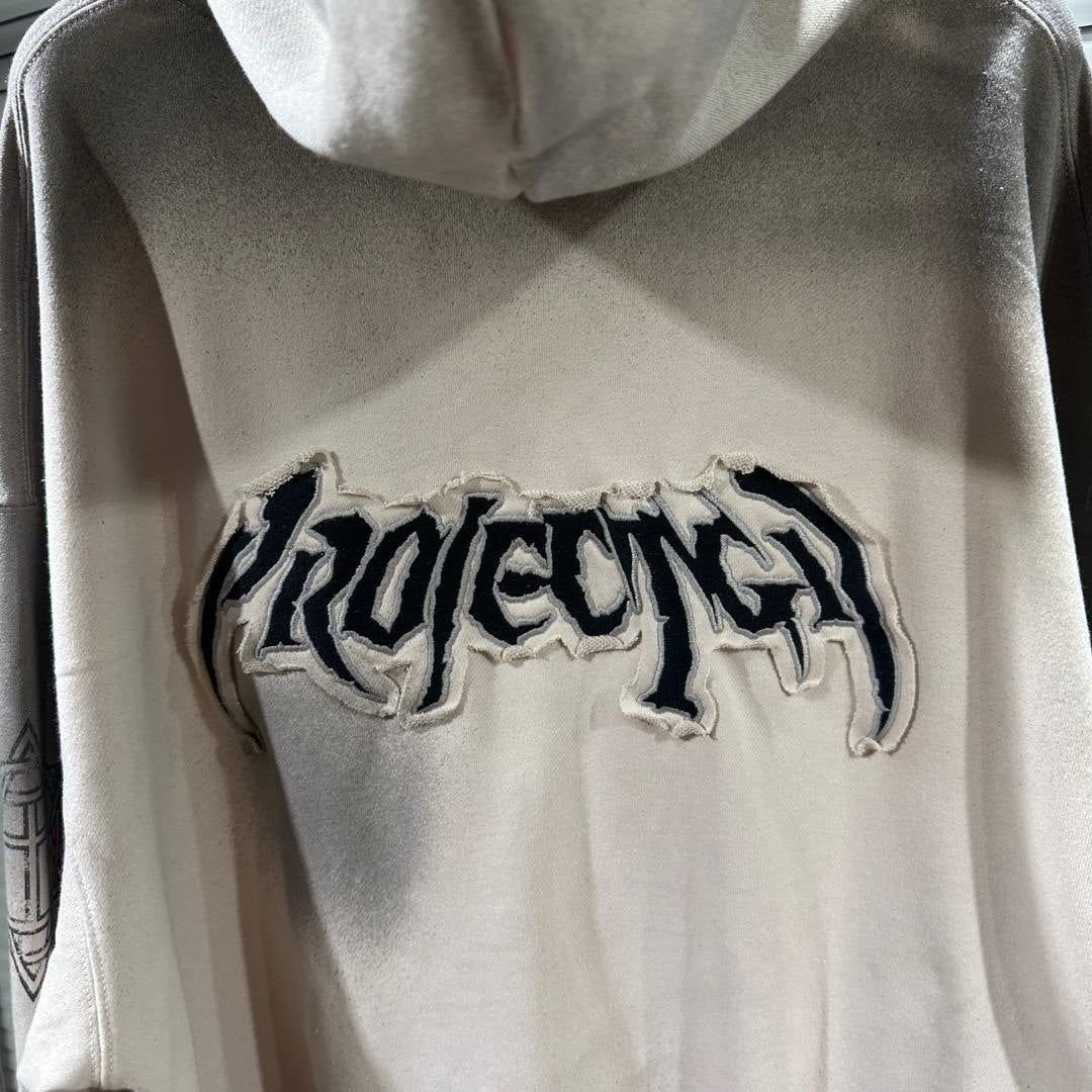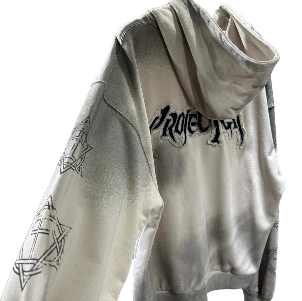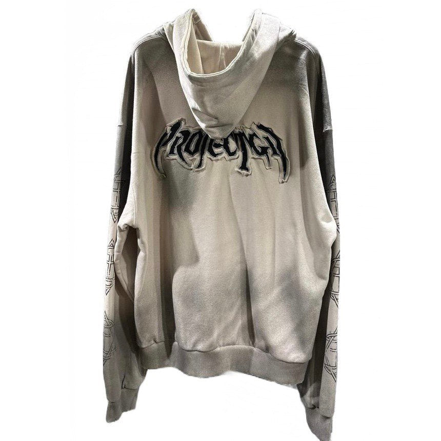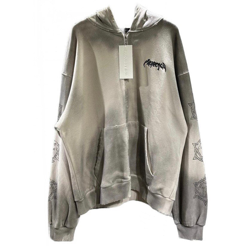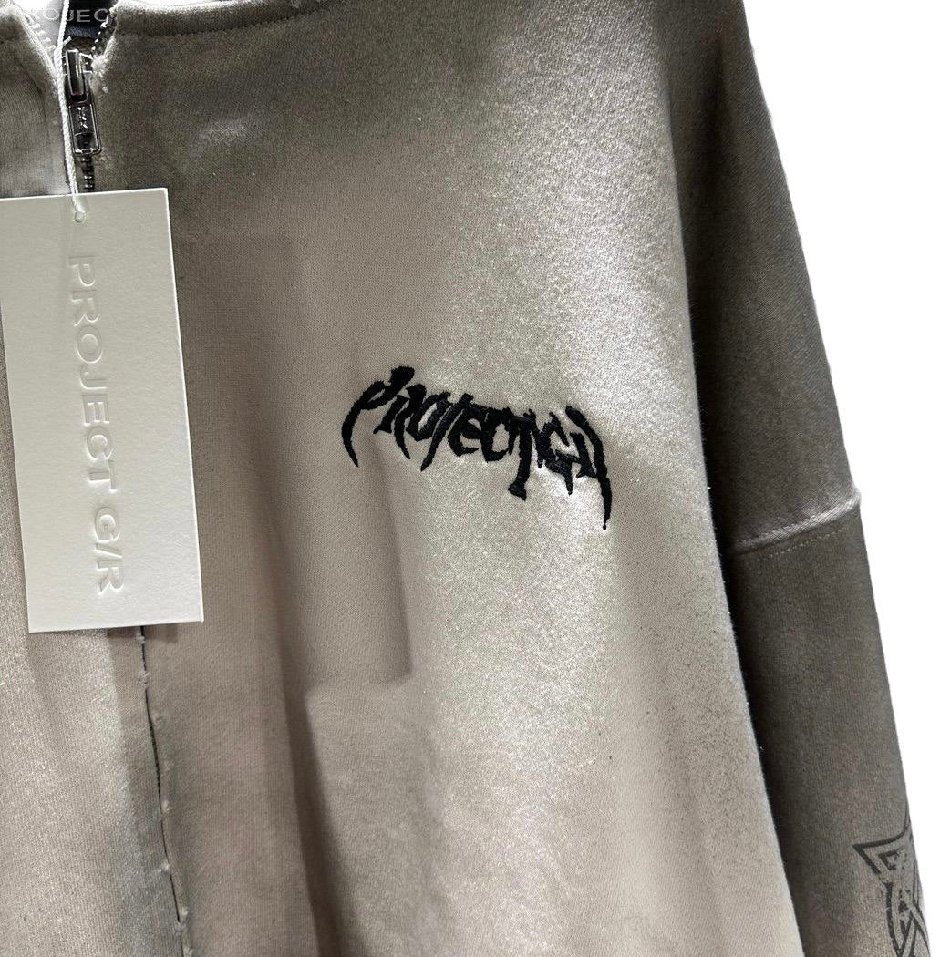 Gray zip up hoodie from Project G/R brand, with faded effect.
