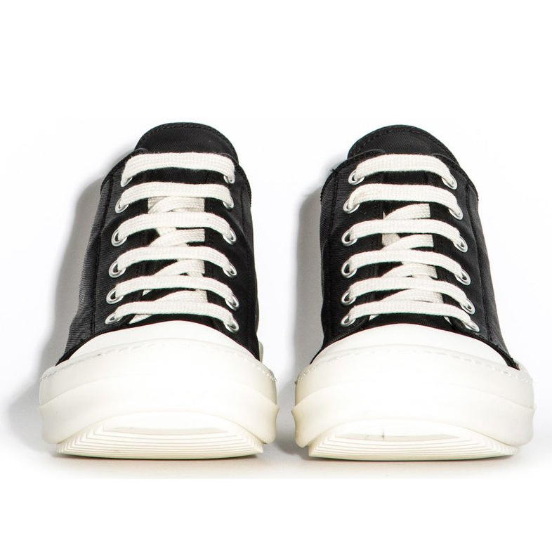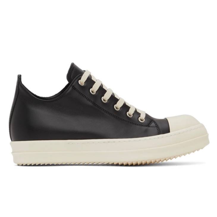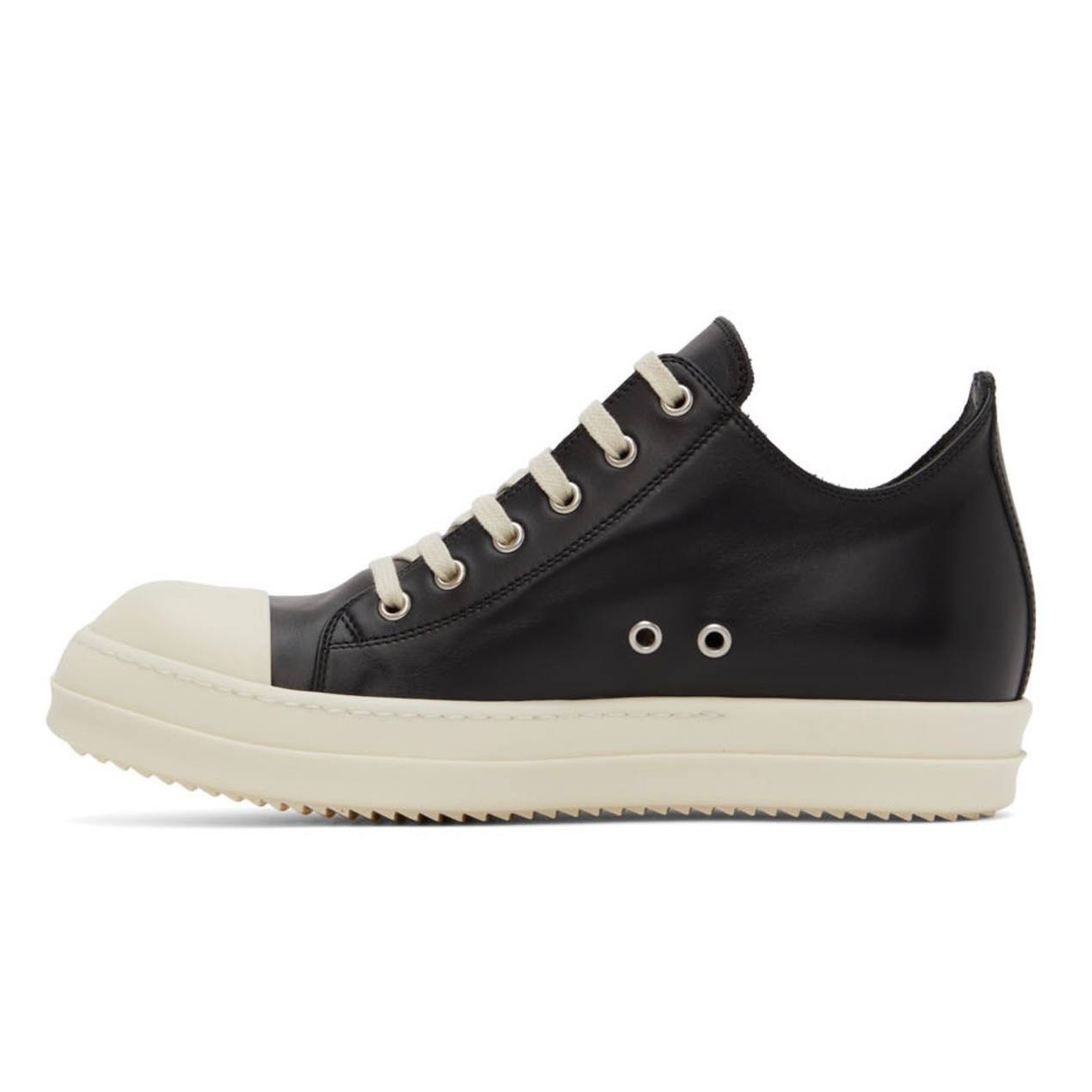 Low-top grained calfskin Rick Owens sneakers in black. Platform high is 1,5 in