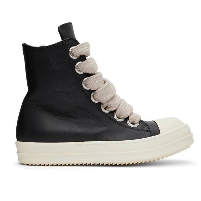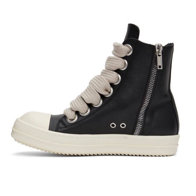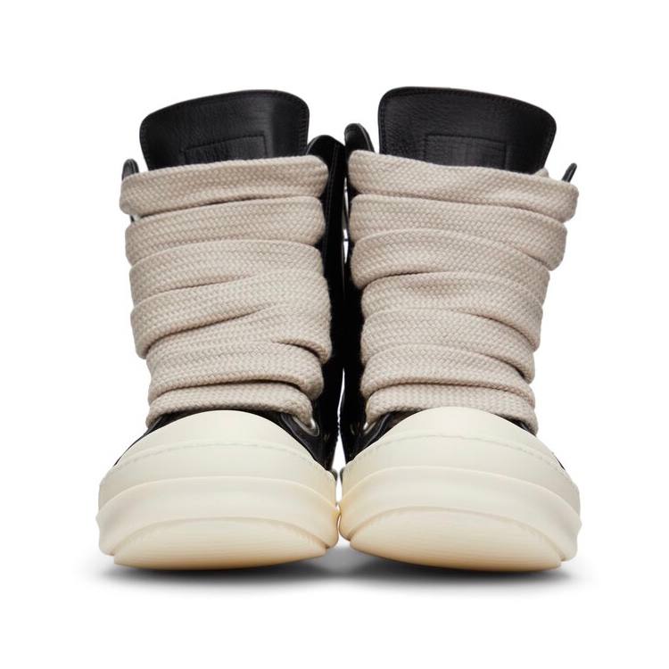 Rick Owens Jumbo Lace High Top Black Leather Sneakers