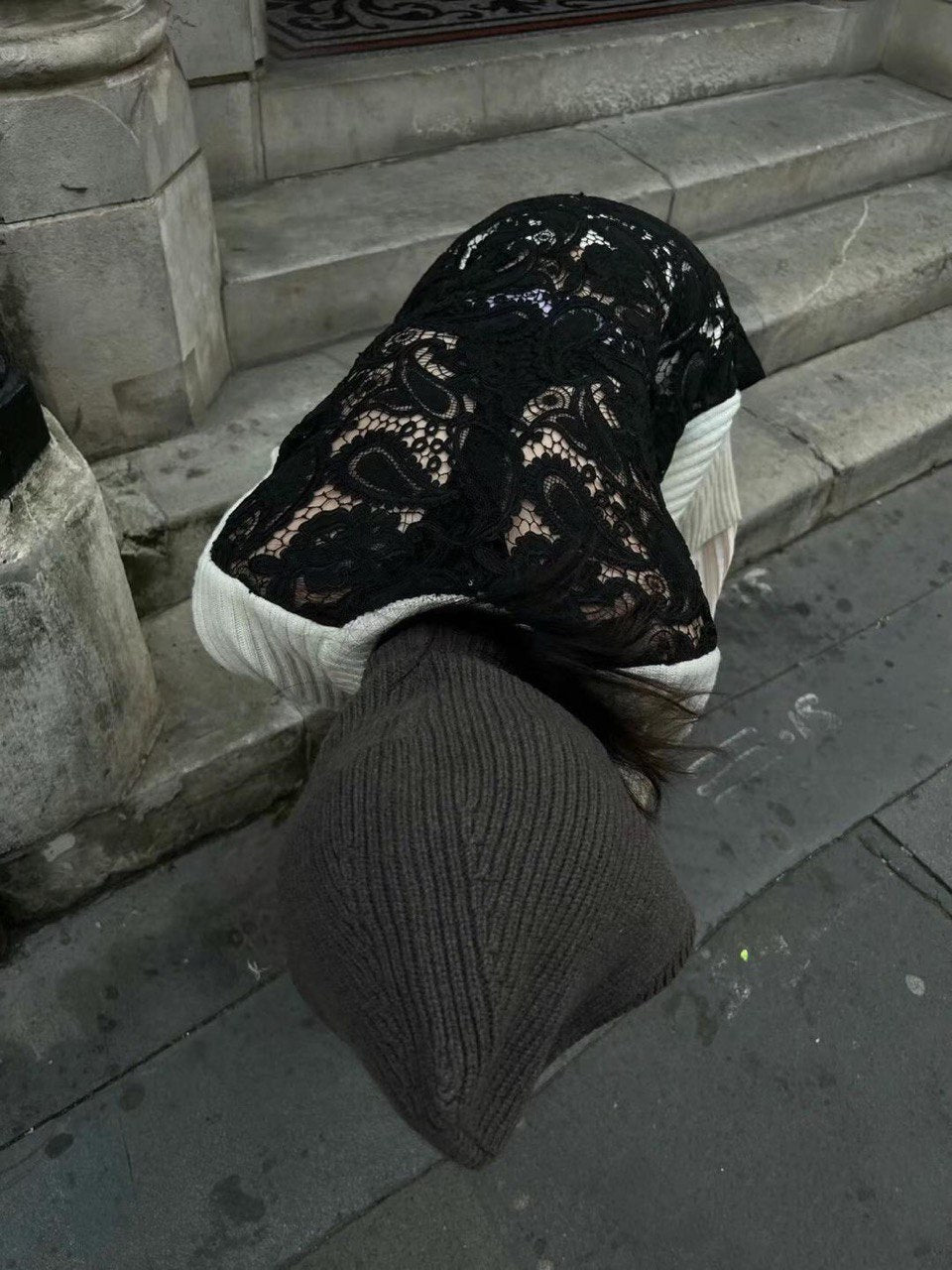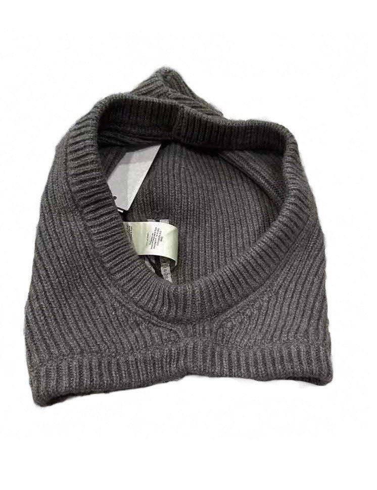 Cashmere/wool ribbed beanie balaclava in grey from Rick Owens.