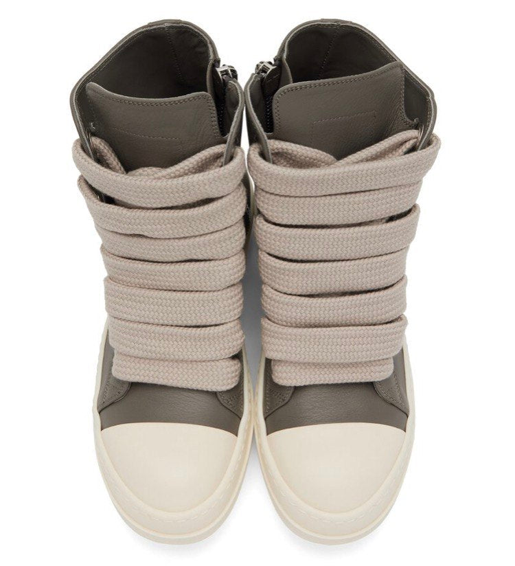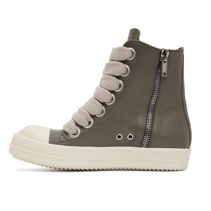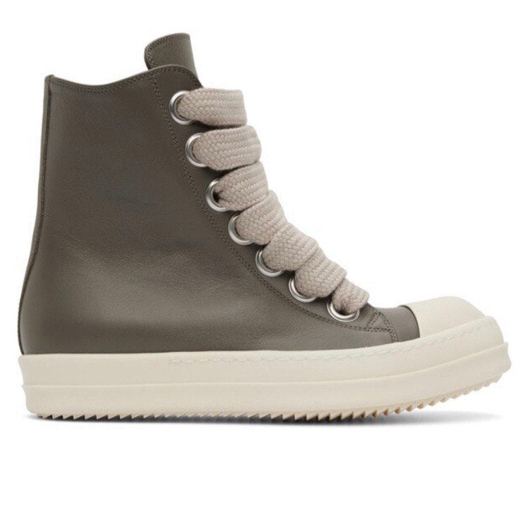 Khaki high-top lace-up sneakers from RICK OWENS DRKSHDW featuring paneled design, ankle-length, branded insole, front lace-up fastening and flat rubber sole.t.