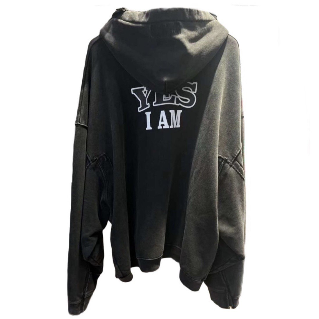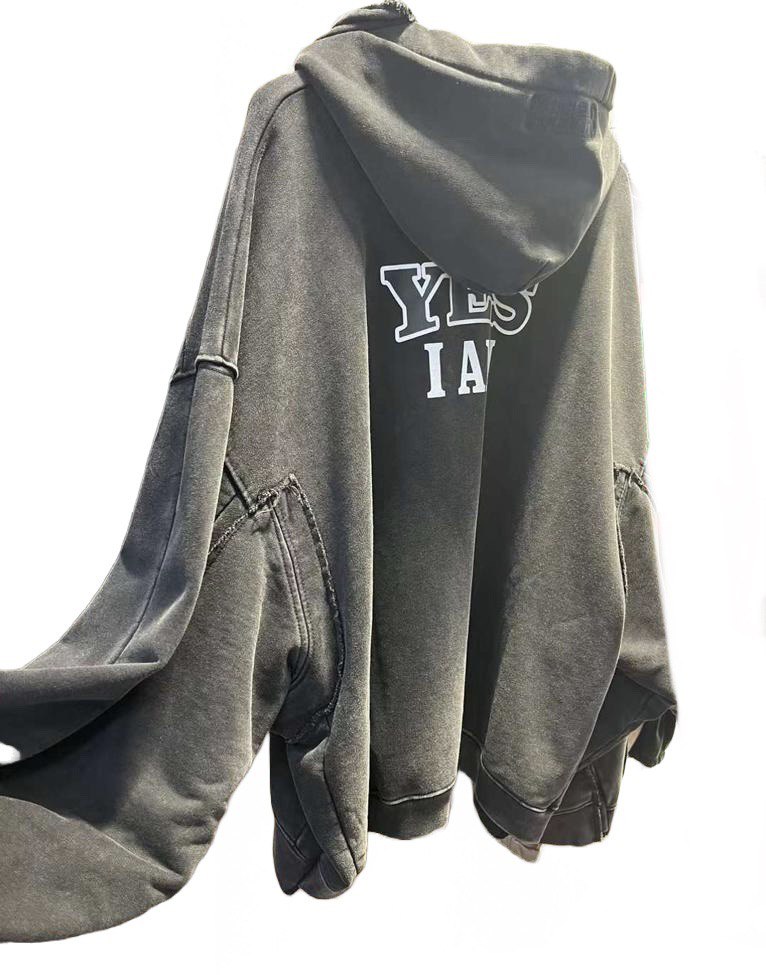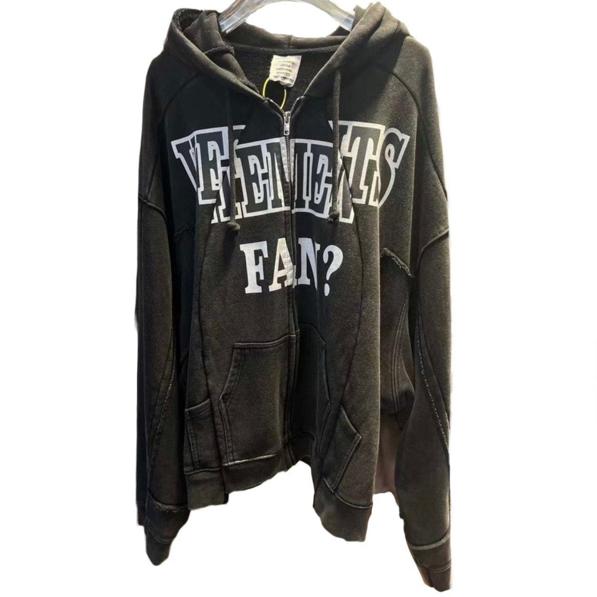 VETEMENTS Fan Deconstructed Zip-Up Hoodie Washed Black