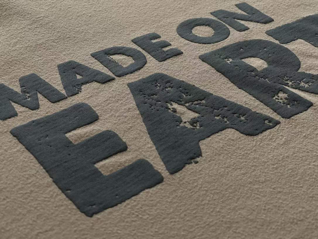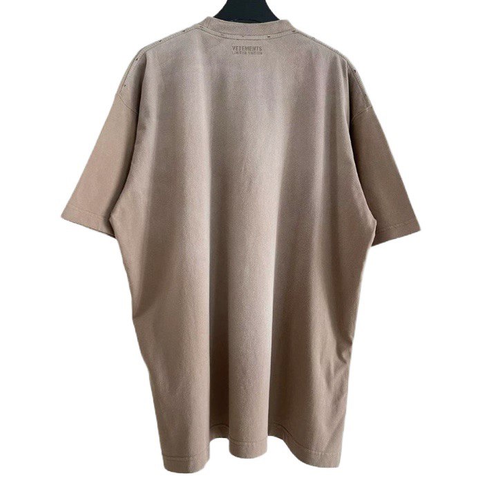 The VETEMENTS Made On Earth T-shirt is crafted with an oversized design and faded beige colourway for a classic, vintage look. The "Made On Earth" slogan adds to the earthy feel, offering a unique take on fashion.